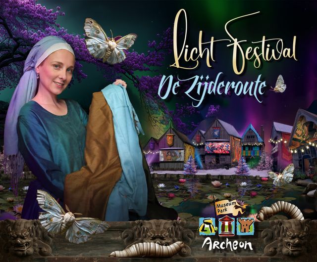 Dit jaar neemt het Licht Festival je mee op een magische reis langs de Zijderoute — de eeuwenoude handelswegen die Oost en West met elkaar verbonden. Al in de prehistorie waren mensen al handel aan het drijven van stenen werktuigen, barnsteen, voedsel en huiden. Ontdek hoe zijde al eeuwenlang verweven is met onze geschiedenis, van de mysterieuze ontdekking in het verre Oosten tot de komst van deze kostbare stof in het Romeinse Rijk.
