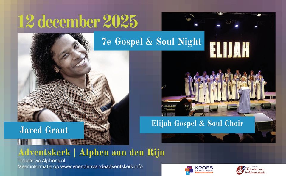 Wat zou de feestmaand december zijn zonder de onvergetelijke Gospel & Soul Night in de Adventskerk? Ook dit jaar belooft het weer een spectaculair muzikaal feest te worden!