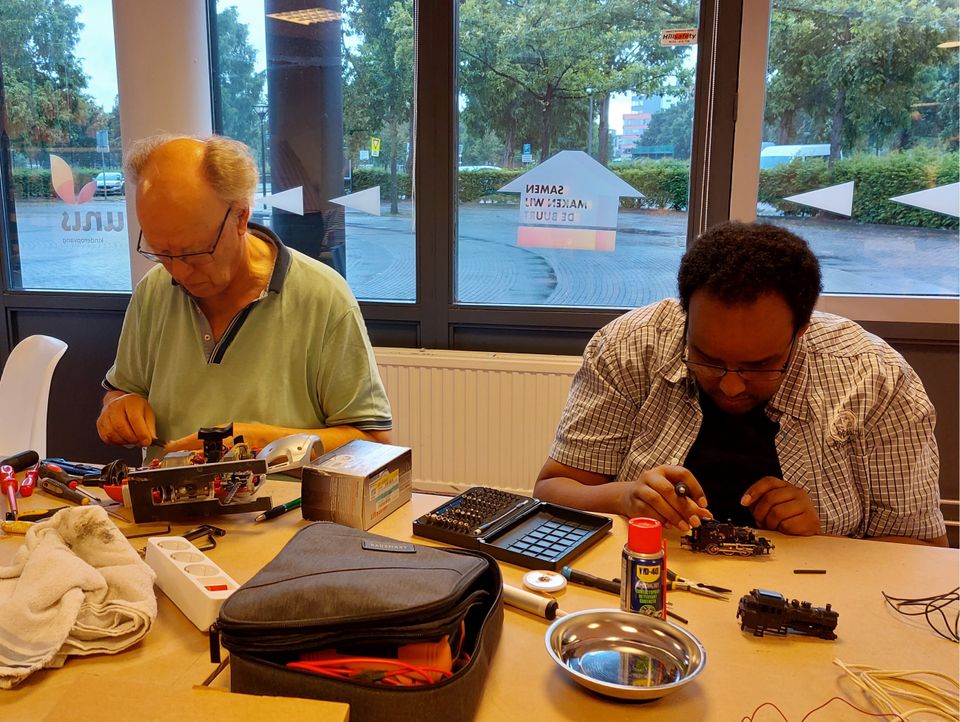 Wat doe je met een haardroger die het niet meer doet? Weggooien? Mooi niet! Dan ga je naar het repaircafé in Buurthuis Kerk en Zanen. Bezoekers zijn welkom met hun defecte apparaten, speelgoed, en wat dan ook. De kans is groot, dat je met een hersteld apparaat weer naar huis gaat. Op de open dagen is er ook textielreparatie mogelijk. Meestal is de hulp zonder kosten.