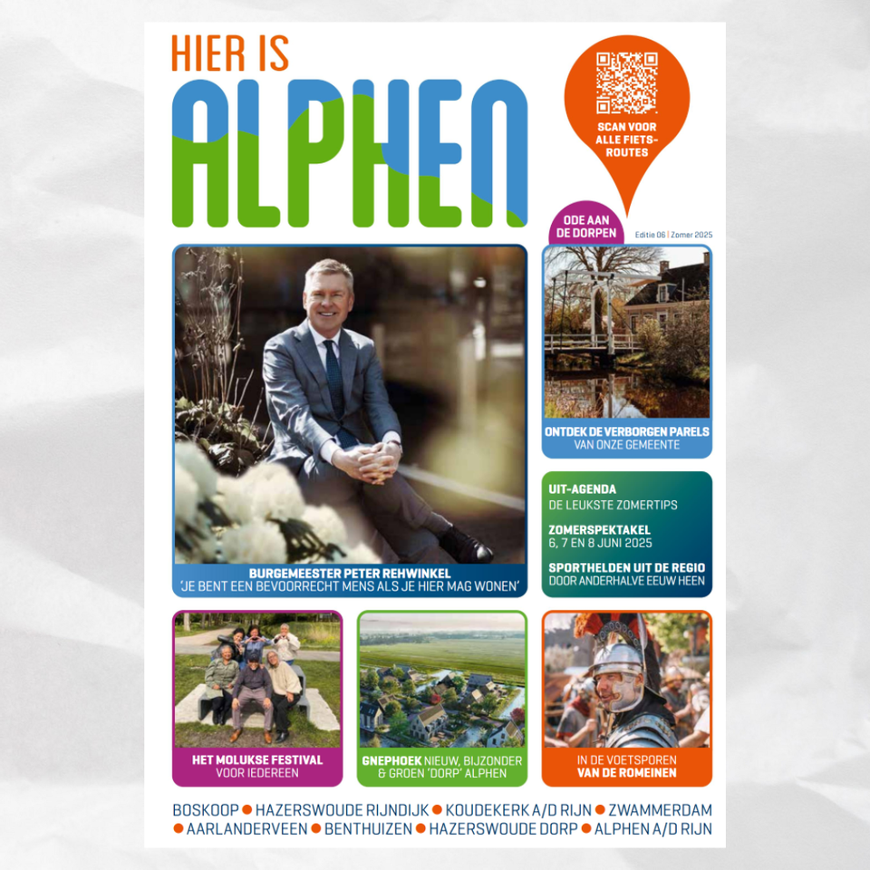 Heb je het magazine niet ontvangen? Lees dan nu de online versie. Heb jij ook interesse om in het volgende nummer te adverteren, of heb jij een mooi verhaal te vertellen of andere leuke tips? Neem dan contact op via redactie@hierisalphen.nl met onze redactie.